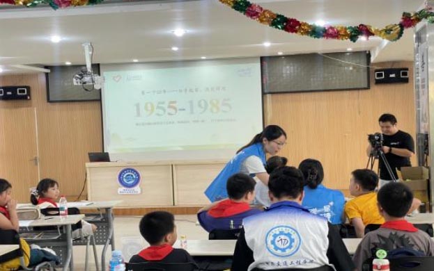 宣讲活动伊始,宣讲团成员吉福翎以1954年广西富钟县花山矿区杉木冲发现的“中国第一块铀矿石”为引人入胜的切入点,缓缓拉开了中国核工业波澜壮阔发展故事的序幕。“这块意义非凡、被称为‘开业之石’的铀矿石,在1955年1月15日被郑重地送进中南海,毛泽东等中央领导现场观看了放射性演示,这一关键事件为党中央作出发展原子能事业的伟大战略决策提供了至关重要的依据。”随着宣讲员声情并茂的讲述,小朋友们仿佛穿越时空,回到了那个百废待兴却充满壮志豪情的年代,真切感受到老一辈革命家为国家崛起而不懈奋斗的坚定决心。