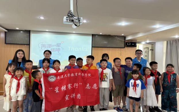 2025年9月13日14:00,南通大学教育科学学院“两弹一星”精神志愿宣讲团,满怀热忱地走进南通紫荆花社区党群服务中心,以“党领导下的中国核工业发展历程”为主题,开展了一场别开生面且意义深远的宣讲活动。此次宣讲旨在让社区居民,尤其是青少年群体,深入了解中国核工业的辉煌发展轨迹,深刻感悟“两弹一星”精神与核工业精神的时代价值,传承红色基因,激发爱国热情。